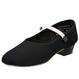 Capezio's Academy character shoe is perfect for any practice session. The lightweight canvas shoe features a pre-attached elastic strap with an easy snap closure and a chunky, contoured heel. The suede sole makes gliding around easy, which means it's the perfect basic ballroom shoe as well.