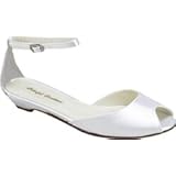 Dance the night away in this exquisite two piece peep toe. It has an adjustable strap and is made of dyeable white satin.