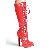 5 inch stiletto heel.Knee high platform boot that laces up the front.